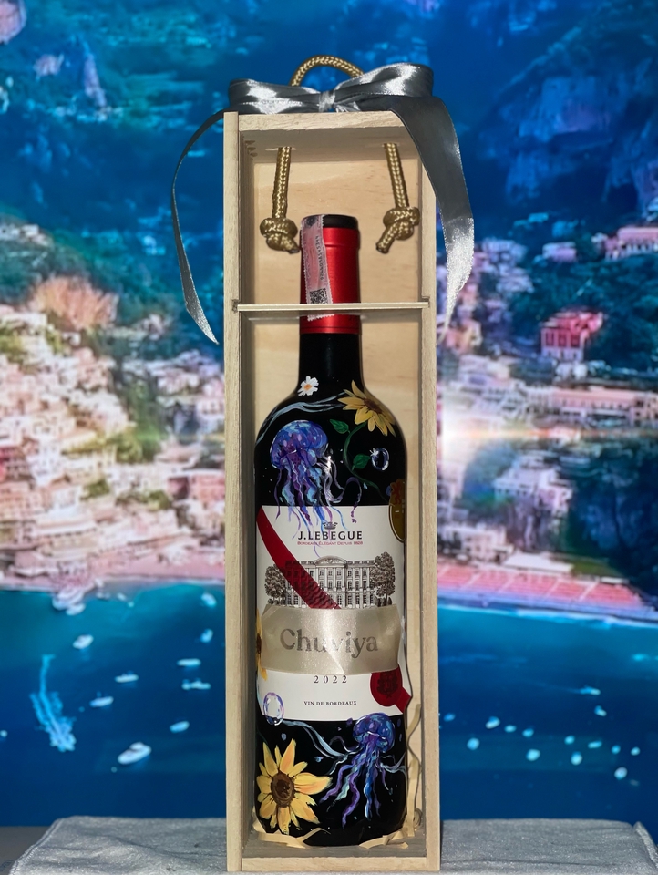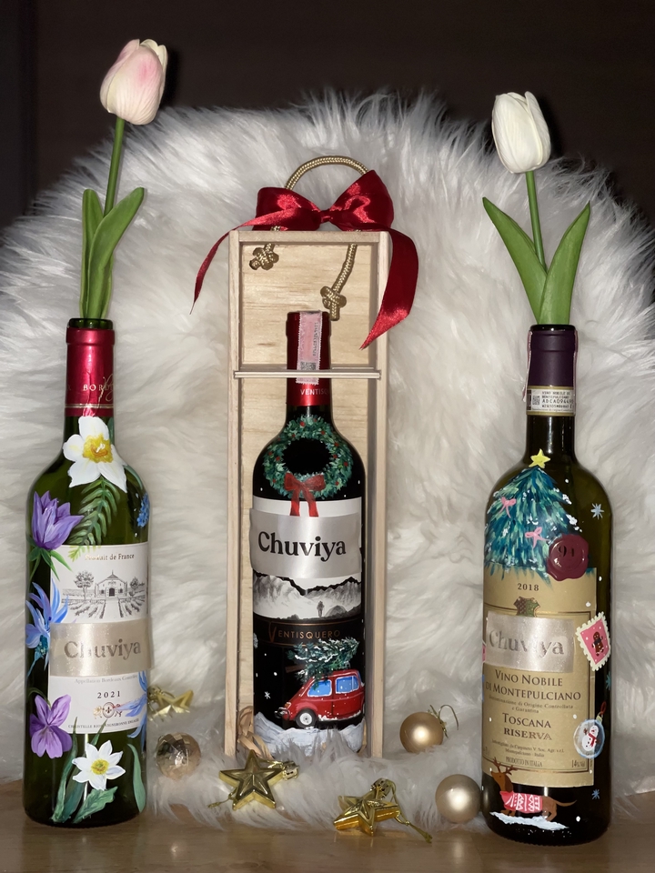 - • ขวดไวน์เพ้นท์มือแบบดีไซน์เฉพาะตัว