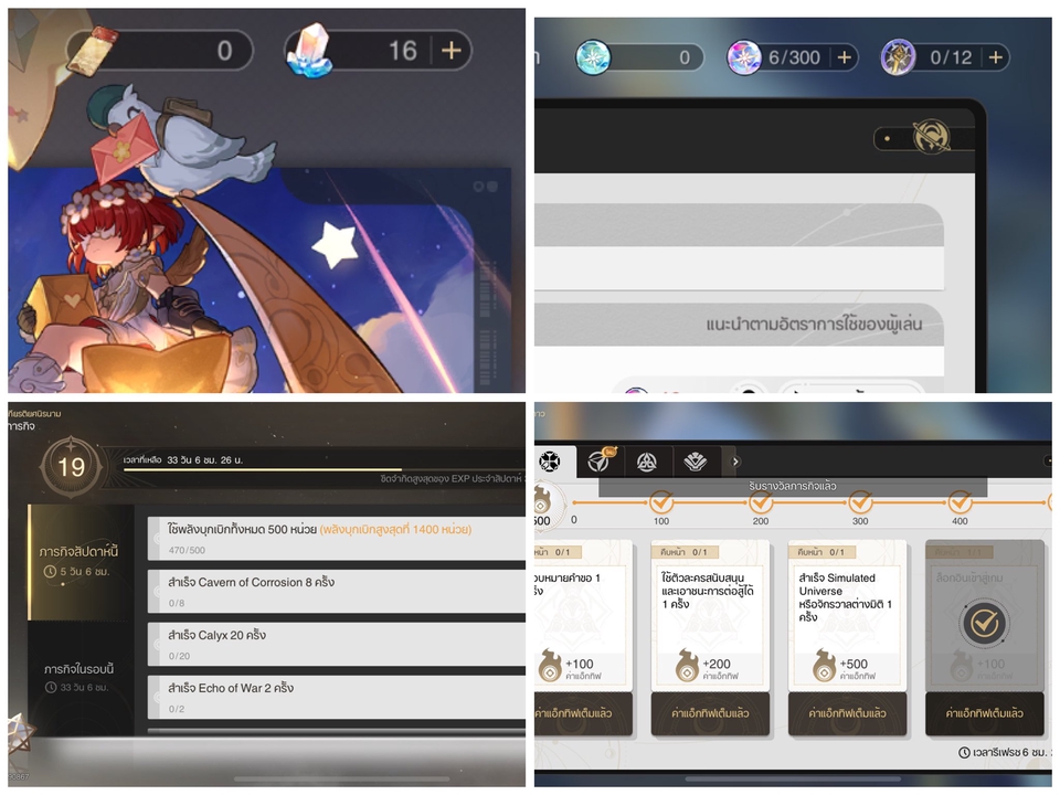 ฿200✦ ใช้พลังงานในเกม (สามารถบรีฟได้ว่าอยากให้ลงอะไร) ✦ เควสประจำวัน 60 เพชร ✦ Battle Pass ✦ คำขอสำรวจ ✦ ลงซิมรายสัปดาห์ให้แต้ม 14000/14000 ✦ Echo of War (3/3) ✦ อีเว้นท์ย่อยในช่วงนัั้น ✦ สามารถให้คำแนะนำได้ตลอดการดูแลไอดี