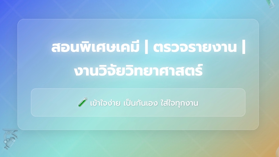 - จบ ป.ตรี เคมี เกียรตินิยมอันดับ 1 ม.เกษตร บางเขน - ทุน พสวท. - จบ ป.โท เคมีอินทรีย์ - เคยเข้าค่าย สอวน. เคมี - มีประสบการณ์ สอนออนไลน์ ตรวจรายงาน ช่วยทำงานวิจัย ***พร้อมถ่ายทอดความรู้ให้เข้าใจง่าย ใส่ใจรายละเอียด ส่งงานตรงเวลา***