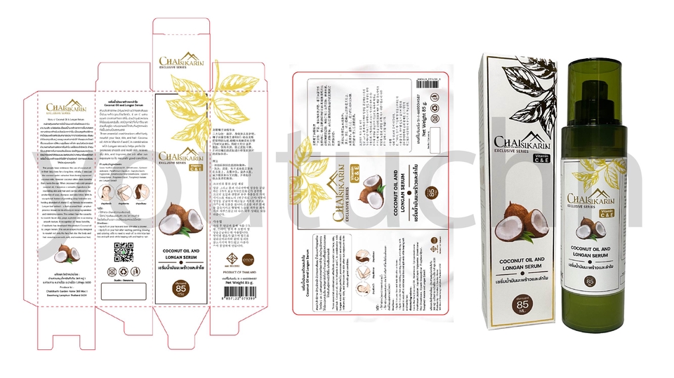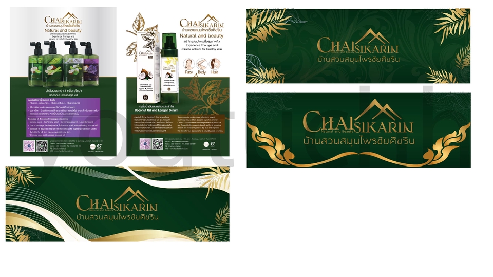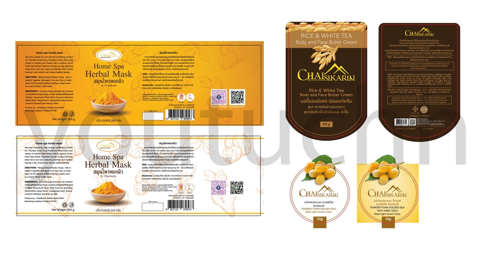 งานบรรจุภัณฑ์ที่ลงมือทำตั้งแต่โครงกล่องบรรจุภัณฑ์ กราฟิก และฉลากสินค้าติดขวดข้างใน โดยเป็นผลงานที่ส่งเข้า OTOP ของแบรนด์ บ้านสวนสมุนไพร ชัยศิขริน จังหวัดลำพูน ประสานงานกันผ่านแพลตฟอร์มออนไลน์จนงานสำเร็จด้วยดี พูดคุยถึงรายละเอียด ลักษณะ เนื้อหา แนวทางของงาน ว่าต้องการประมาณไหน ส่งข้อมูลตามที่ตกลงให้ครบถ้วน กำหนดระยะเวลาของวันส่งงานให้ชัดเจน เริ่มลงมือทำ 2-3วัน จะส่งงานให้ดูในขั้นรูปแบบของงานร่างเพื่อให้เข้าใจตรงกันมากขึ้น 4-5วัน ส่งงานจริงพร้อมพูดถึงการแก้ไขงาน ส่งงานจริงพร้อมไฟล์สำเร็จ