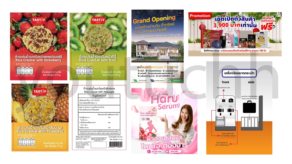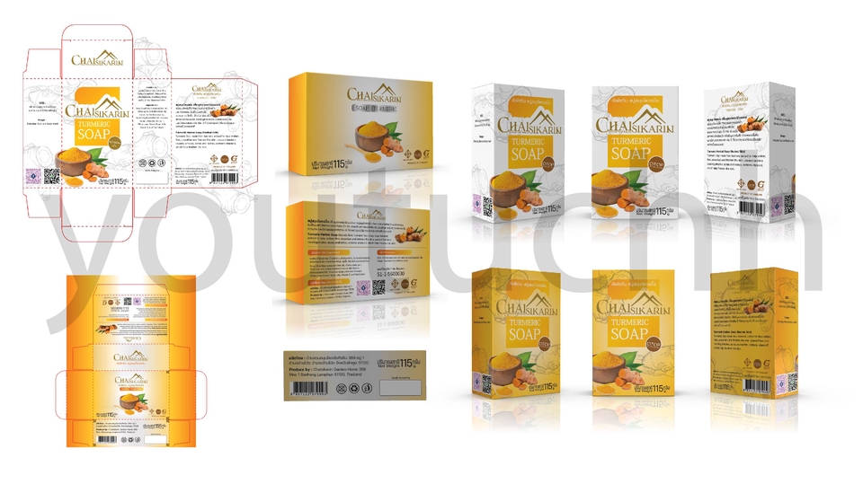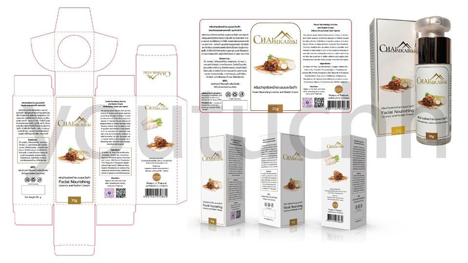 โครงกล่องบรรจุภัณฑ์+กราฟิกบนบรรจุภัณฑ์+ฉลากสินค้า