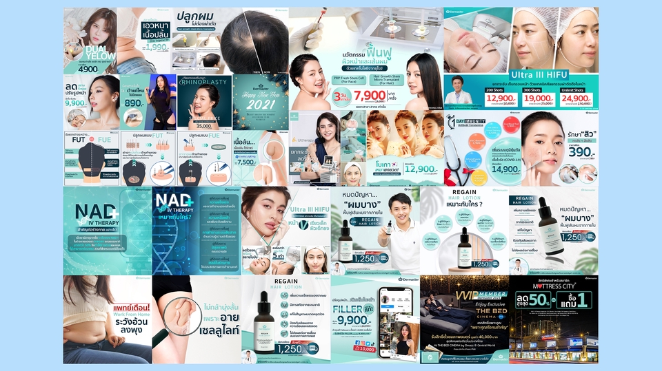สวัสดีครับ ผมแอร์ Senior Graphic Designer ประสบการณ์กว่า 7 ปี เชี่ยวชาญสาย Cosmetic, Skincare, Medical, Beauty ออกแบบครบทั้ง Social Banner, Infographic, Product Retouch, Sale Kit และวิดีโอสั้นเพื่อ Branding งานไว เนี๊ยบ แก้ไขรวดเร็ว เข้าใจแบรนด์และสื่อสารชัด เคยร่วมงานกับธุรกิจหลากหลาย