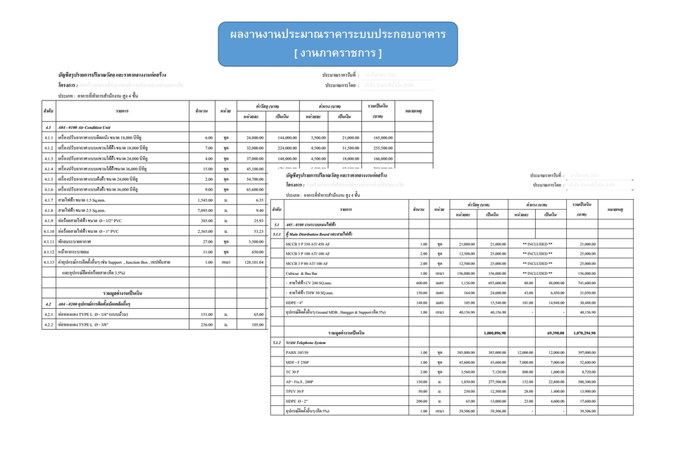 เขียนแบบ และประมาณราคา งานระบบประกอบอาคาร (งานระบบปรับอากาศ / สุขาภิบาล / ไฟฟ้า)
