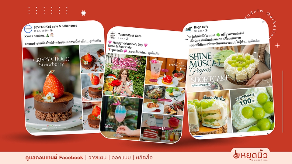 ดูแลคอนเทนท์ Facebook + Tiktok วางแผน ออกแบบ ผลิตสื่อ