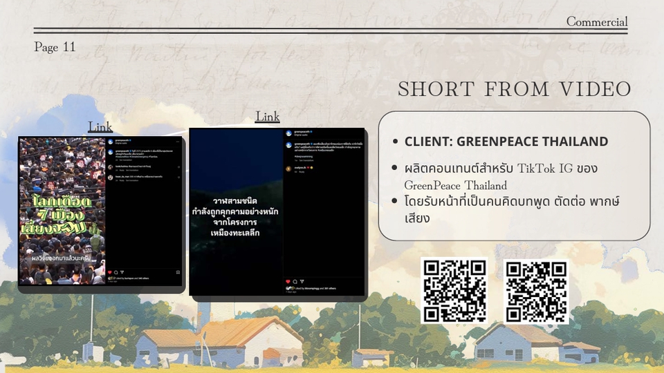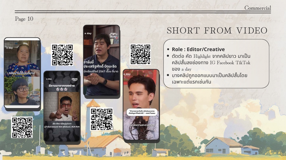 ฿1,000ราคาเปลี่ยนแปลง มาก-น้อย ตามรายละเอียดงาน - คลิปสั้น ( ไม่เกิน 2 นาที / คลิป ) - ถ่ายทำเริ่มต้น ตามตกลง - แก้ไข 3 ครั้ง / คลิป - ไม่แก้ไขโครงสร้างคลิปจากที่บรีฟไว้ (หากมีพากษ์เสียงคิดเพิ่ม 500)