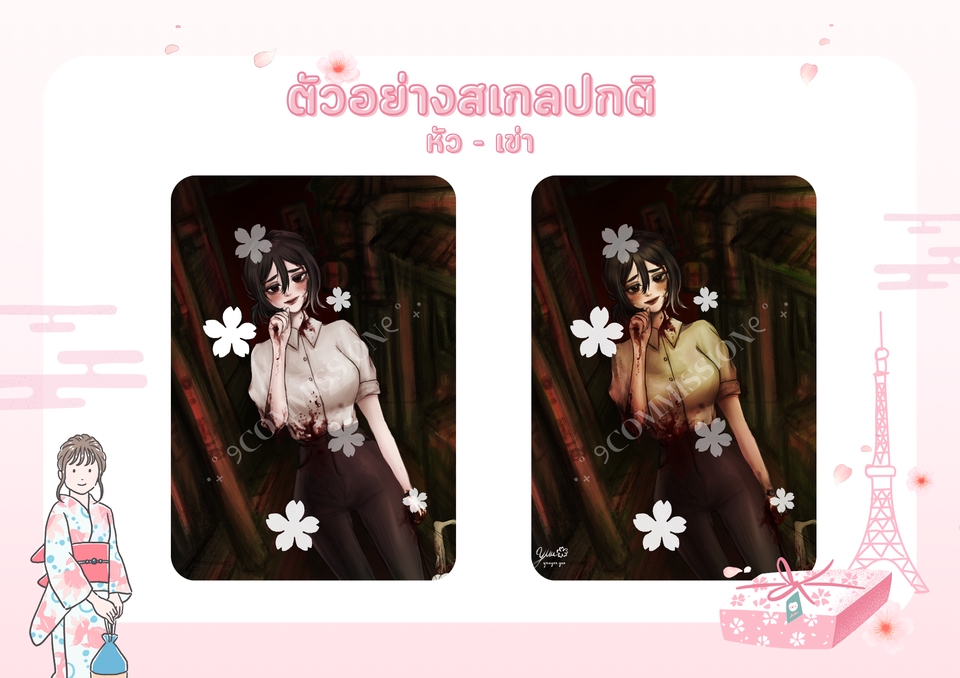 รับวาดภาพสไตล์อนิเมะ , วาดภาพแนวกึ่งสมจริง , ตัวละคร Chibi , ออกแบบตัวละคร Character , ภาพประกอบนิยาย , สามารถวาดแนวน่ากลัว น่ารัก เซ็กซี่ ดูตัวอย่างงานทักสอบถามได้เลยค่ะ ขั้นตอนการทำงาน 1. พูดคุยรายละเอียดของงาน / รับบรีฟ 2. ทำการประเมินราคา 3. กำหนดวันส่งงาน 4. ส่งใบเสนอราคา 5. เริ่มลงมือทำงาน 6. จะส่งงานสเก็ตเพื่อประเมินว่ามีจุดที่ต้องการให้แก้ไขไหม แก้ไขงานได้ทั้งหมด 3 ครั้ง 7. ลูกค้ารอรับงานตามวันที่กำหนด