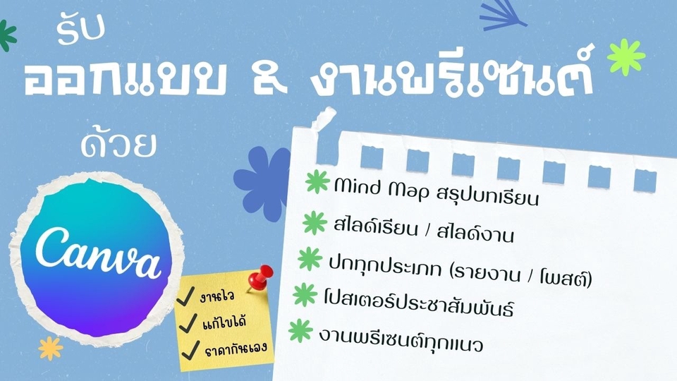 รับออกแบบ Canva งานพรีเซนต์ สไลด์ Mind Map โปสเตอร์