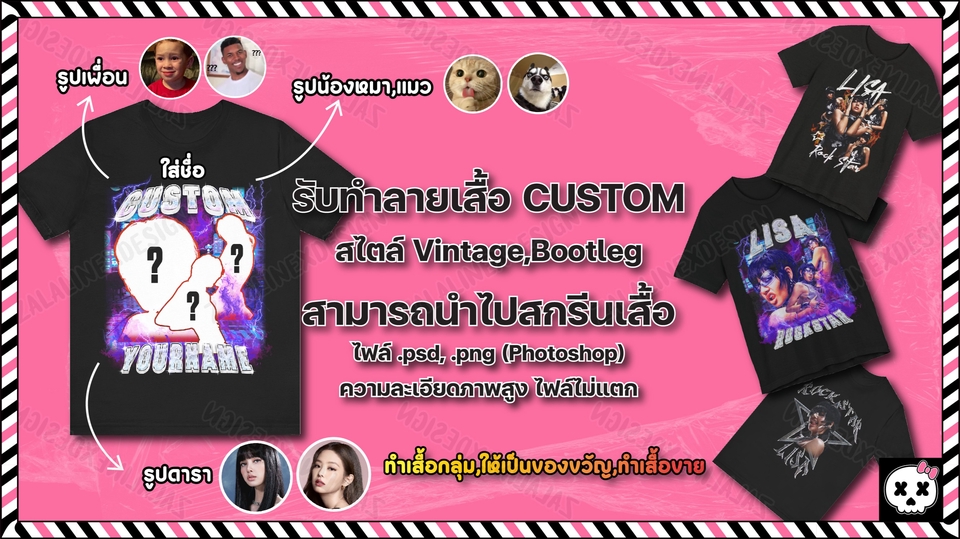 ออกแบบลายเสื้อ CUSTOM / ใส่ชื่อ รูปภาพคน สัตว์เลี้ยง สไตล์ Vintage,Y2K,Bootleg