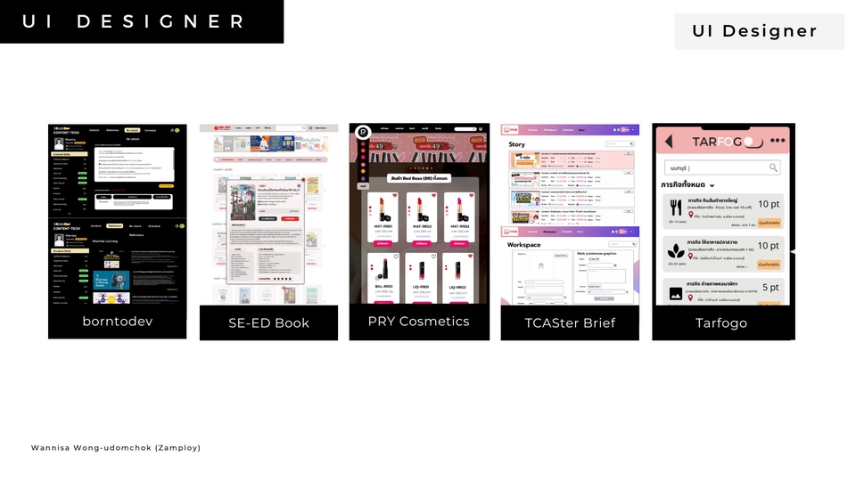 - • UX/UI: ออกแบบหน้าเว็บหรือแอป 3–5 หน้าจอ