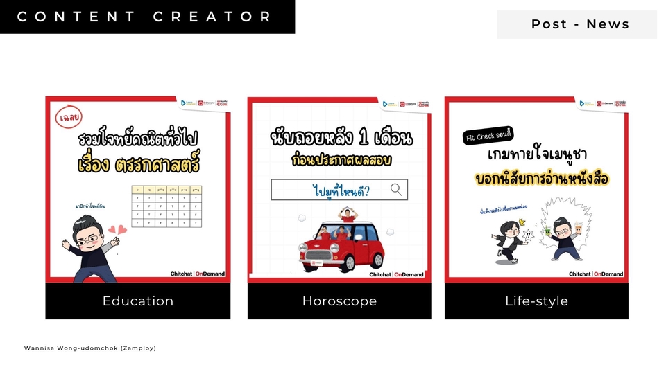 รับงาน Content ครบวงจร ทั้งงานเขียนแคปชั่น บทความ นิยาย เรียบเรียงหนังสือ รูปเล่มโปรเจค พร้อมกับงานออกแบบ Graphic Designer & UX/UI Designer และตัดต่อวิดีโอ