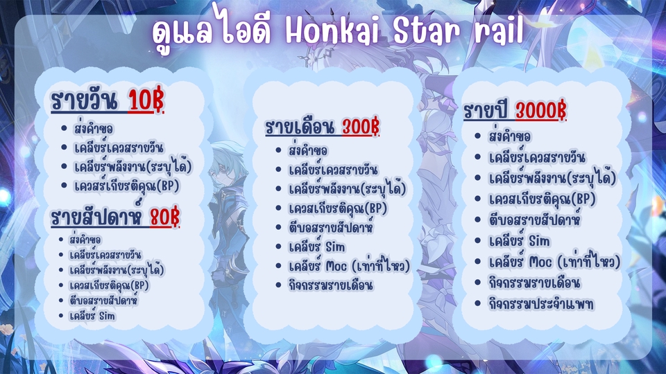 ฿100❣ บริการดูแลไอดีเกม ❣ 🌼 เกมที่รับดูแล 🌼 • Genshin Impact • Honkai: Star Rail • Wuthering Waves • Zenless Zone Zero (ZZZ) • Infinity Nikki • Nikke ฯลฯ