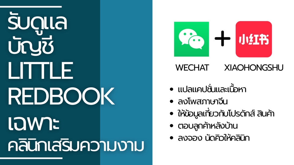 โพสภาษาจีน พร้อมดูแลบัญชีแพลตฟอร์มจีน Wechat&Xiaohongshu สำหรับคลินิก และธุรกิจอื่นๆอีกมากมาย