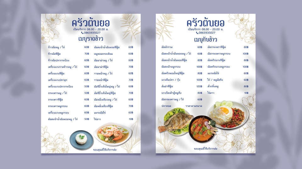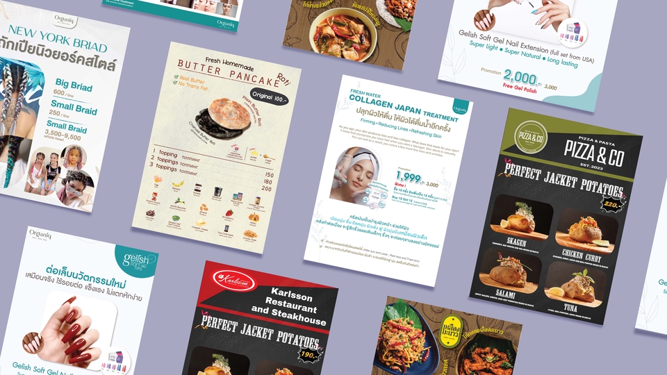 รับออกแบบนาม บัตร - โปสเตอร์ - ฉลากสินค้า - สื่อสิ่งพิมพ์ ต่างๆ รับออกแบบสื่อสินค้าสิ้นค้าประเภทต่าๆ รวดเร็ว ถูกใจคุณลูกค้า สิ่งที่คุณลูกค้าต้องเตรียม 1. ถาพสินค้าที่คุณลูกค้าอยากได้เป็นตัวอย่าง 2. ระบุ ข้อความ เนื้อหา 3. ระบุขนาดที่ต้องการ ขั้นตอนการส่งงาน 1. 1-2 วัน จะเริ่มส่งแบบแรกให้ลูกค้าเลือกและเริ่มทำการแก้ไข 2. สามารถแก้ไขงานได้ 3 ครั้ง / ชิ้นงาน (ไม่นับแก้คำผิด) 3. หากแก้งานเกิน 3 ครั้ง ทางเราจะคิดค่าใช้จ่ายเพิ่มเติมโดนราคาขึ้นอยู่กับความยากง่ายในการแก้ไขตัวงาน 4. ถ้าลูกค้ามีการเปลี่ยนแบบสินค้าเป็นแบบใหม่ทางเราขออนุญาติคิดราคาเพิ่มนะคะ • เสร็จงานลูกค้าจะได้รับไฟล์ .jpeg พร้อมไฟล์ .ai (ไฟล์แก้ไขได้) ขั้นตอนการทำงาน 1. แจ้งรายละเอียด ข้อความ,ขนาดงาน,ถาพตัวอย่าง 2. ส่งงานแบบแรก เลือกงานหนึ่งในตัวอย่างเป็นแบบหลัก 3. เมื่อเลือกหนึ่งในงานและดำเนินการแก้ไขต่อ 4. แก้ไข้เรียบร้อยพร้อมส่งงาน!