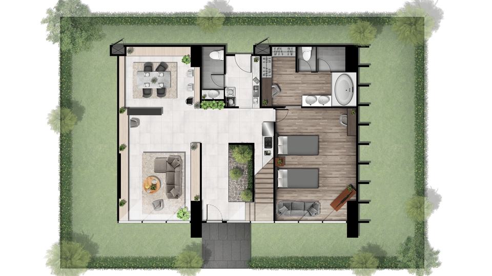 ลงสี Plan บ้านพักอาศัย / คอนโด สไตน์ Realistic