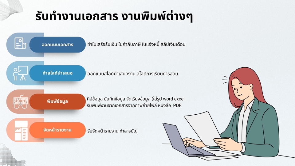 รับพิมพ์งานออกแบบเอกสาร ทำสไลด์ จัดหน้ารายงานและอื่นๆword,excel