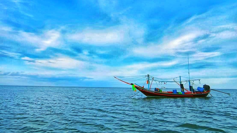 ภาพนี้ถ่ายทอดความงดงามและความสงบของธรรมชาติ โดยมีเรือลำเล็กลอยอยู่กลางทะเลที่กว้างใหญ่ ท้องฟ้าสีครามสดใสตัดกับน้ำทะเลที่พลิ้วไหวเบาๆ สะท้อนถึงความสัมพันธ์ระหว่างมนุษย์และธรรมชาติ เรือที่ลอยลำกลางผืนน้ำเหมือนเป็นตัวแทนของการเดินทางและความหวังในชีวิต แม้จะดูเล็กน้อยเมื่อเทียบกับความกว้างใหญ่ของทะเล แต่ยังคงดำเนินไปอย่างมั่นคง ภาพนี้ชวนให้ผู้ชมสัมผัสถึงความเรียบง่ายและความสงบในชีวิต ขั้นตอนการทำงาน 1. หามุมที่คิดว่าภาพจะออกมาดี 2. ถ่ายภาพเพื่อมอบให้ลูกค้า