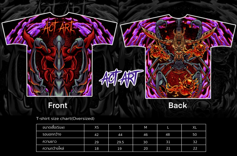 ไฟล์ psd เจาะสีแล้วพร้อมขึ้นบล็อค Art work ตาราง size chart ราคานี้ได้หน้า+หลังเลยครับ