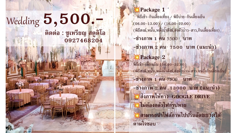 บริการถ่ายภาพงานแต่ง เริ่มต้น5500.- ราคาดี อัธยาศัยดี ส่งงานไว