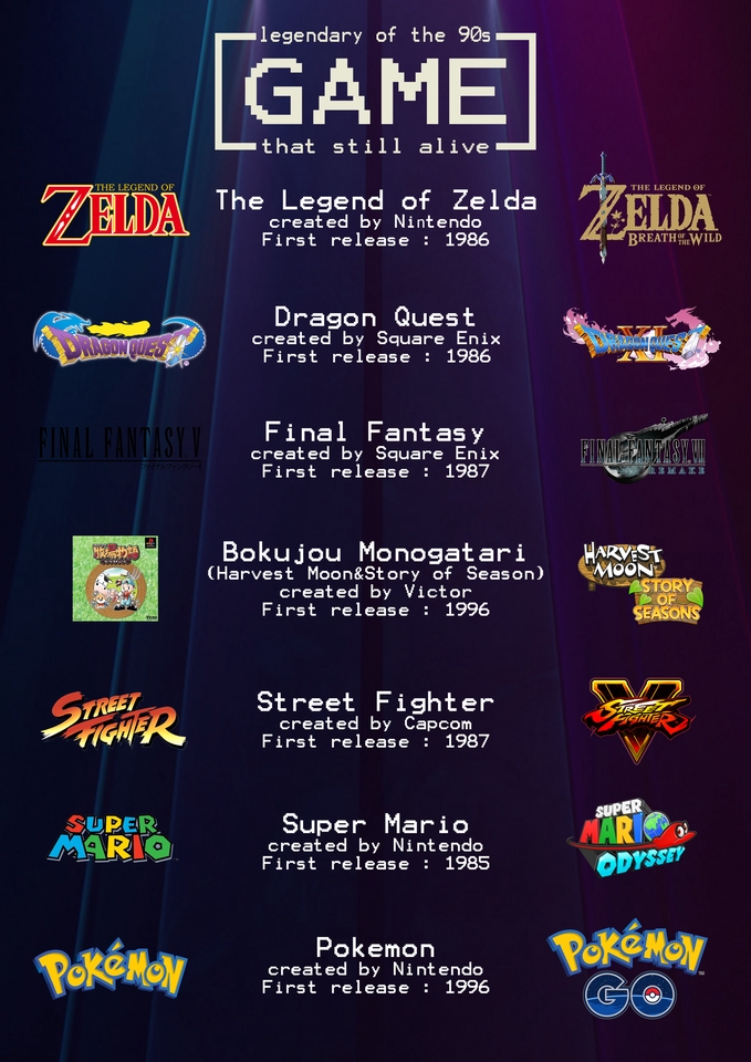 เกมที่กำเนิดมาตั้งแต่ในยุค 90's และอยู่มาจนถึงปัจจุบันที่มีการพัฒนาในหลายๆด้าน รวมไปถึงโลโก้หรือการเล่นของเกมเอง ชิ้นงานนี้สื่อถึงการเปลี่ยนแปลงของตัวเกมที่หลากหลาย เช่น ตัวอย่างง่ายๆอย่างโลโก้ ขั้นตอนการทำงาน 1. วิเคราะห์จุดประสงค์และกลุ่มเป้าหมาย 2. หา reference 3. กำหนดหัวข้อ และรวบรวมข้อมูล 4. จัดลำดับข้อมูลและสร้างสตอรี่ 5. ออกแบบและจัดทำ(รวมไปถึงการแก้ไขงานจาก feed back ลูกค้า)